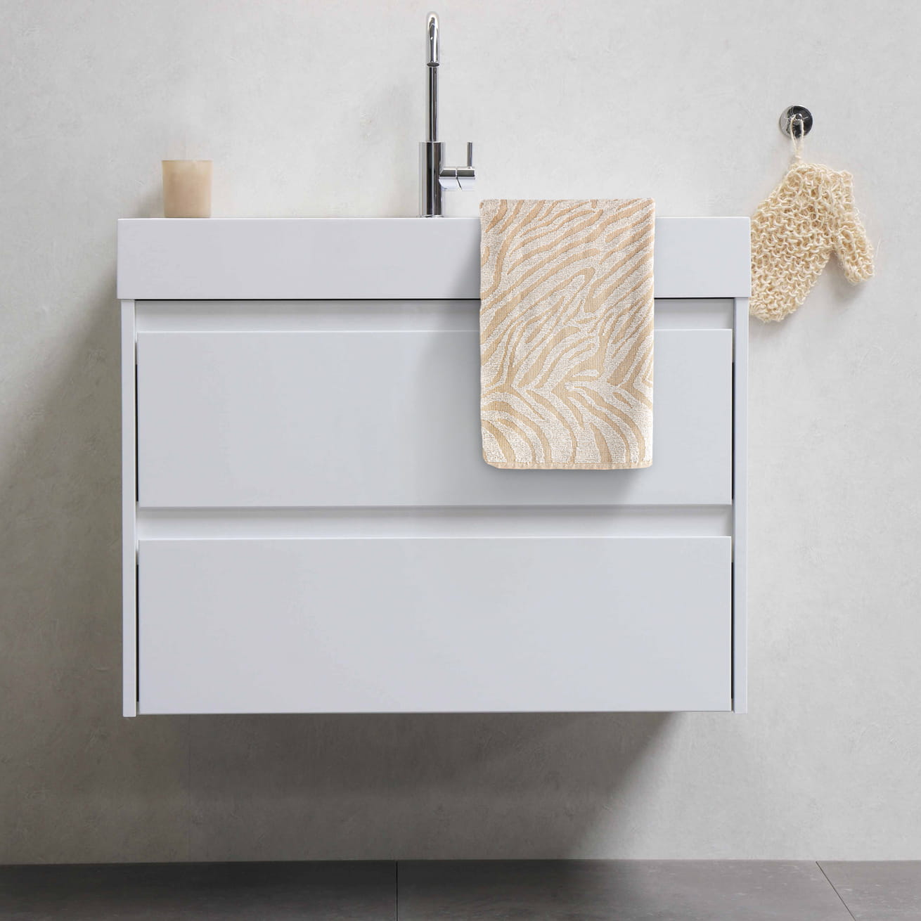 Do przedstawionej wersji łazienkowej (50x90cm), można dobrać większy ręcznik kąpielowy Zebra Tiles (70x140cm), który swoim dekorem nawiązuje do motywu pasów modelu Zebra.