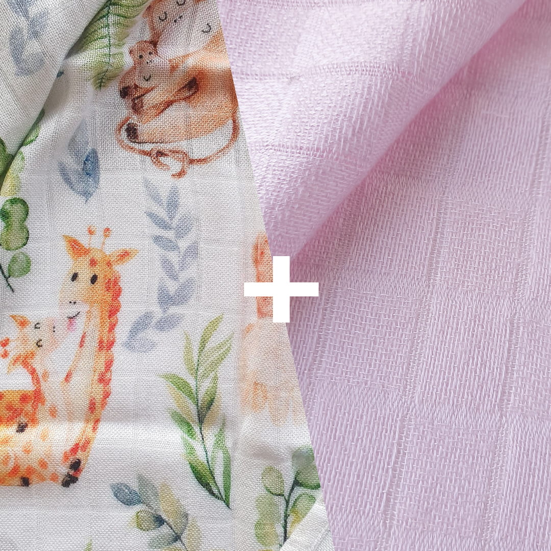 Zestaw 1+1 pieluszka MAMY NA SAFARI (65x65cm) + CLASSIC różowy połysk (75+75cm)